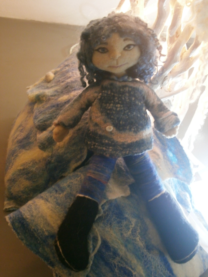 In foto cuscini marini e “Celestino” la mia bambola infeltrita ad ago e tinta con indaco.